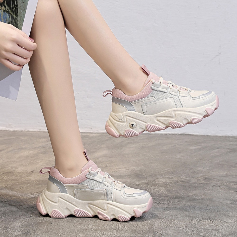Sports Style Women's Spring New Trendy Mesh Breathable Thick-Soled Increased Sports Casual Shoes Women