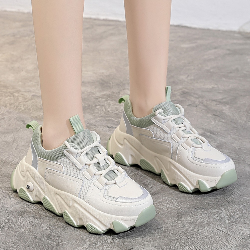 Sports Style Women's Spring New Trendy Mesh Breathable Thick-Soled Increased Sports Casual Shoes Women