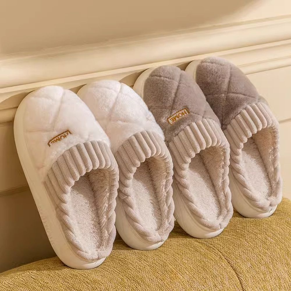 Winter Indoor Home Non-Slip Thick-Soled Men's Plus Velvet Slippers With Heel