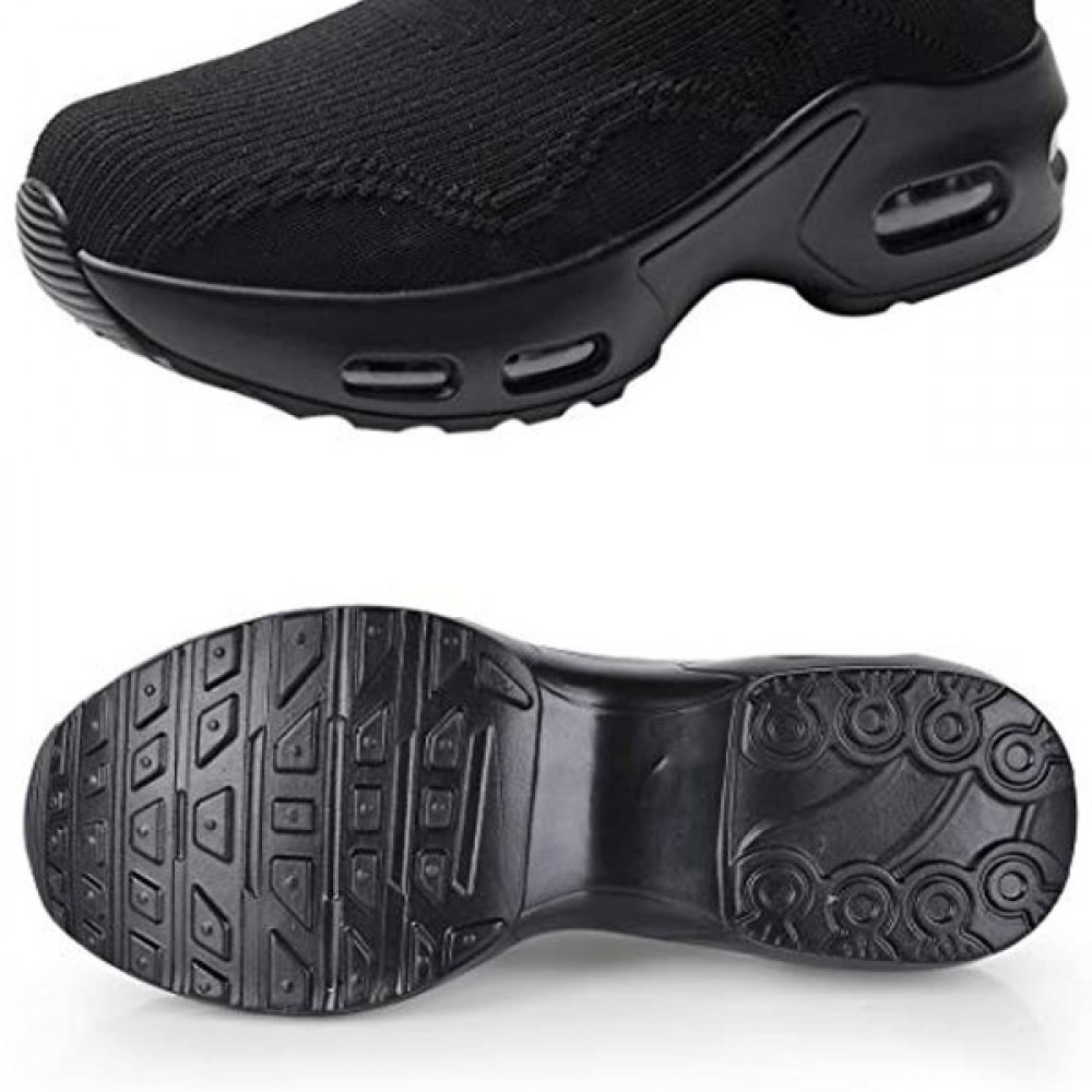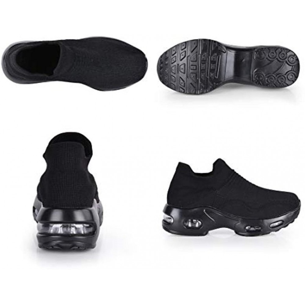 Womens Walking Shoes Sock Sneakers Slip On Mesh Platform Loafers Comfort Wedge Walking Shoes Black